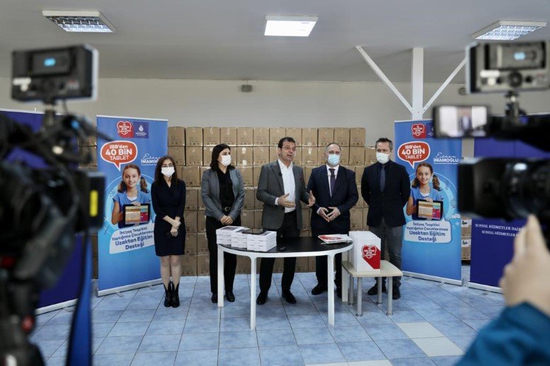 İstanbul Büyükşehir Belediyesi (İBB), pandemi döneminin eğitim alanında yarattığı eşitsizlikleri gidermeye katkıda bulunmak ve öğrencilerin yanında olmak amacıyla, “40 bin tablet dağıtımı” başlattı. Edirnekapı Sosyal Hizmetler Birimi’nde dağıtımdan önce konuşan İBB Başkanı Ekrem İmamoğlu, pandemi toplumun farklı kesimlerindeki yoksullaşma sürecini de hızlandırdığını belirterek, bu süreçten en fazla etkilenen kesimlerinin başında ev kadınlarının ve çocukların geldiğini vurguladı. İmamoğlu, “Çocuklarımız, EBA sistemi ile eğitim alıyorlar. Bu konuda imkânı olan var, olmayan var. Türkiye’nin her noktasında internet erişimine ulaşmak ne yazık ki mümkün olmadığını görüyoruz. İstanbul, büyük bir metropol. Elbette Türkiye’nin birçok yeri, kırsalı da mağdur. Metropollerin mağduriyet konusunda daha şanslı olabileceği düşünülebilir. Ne yazık ki hem yoksulluk verileri hem de İstanbul’umuzuz özellikle belli mahallelerindeki insanların yaşadığı travmalar, işsizlik, yoksulluk aynı zamanda çocuklarımıza, gençlerimize yansıyan sonuçlara ne yazık ki sebep oldu” saptamalarında bulundu.