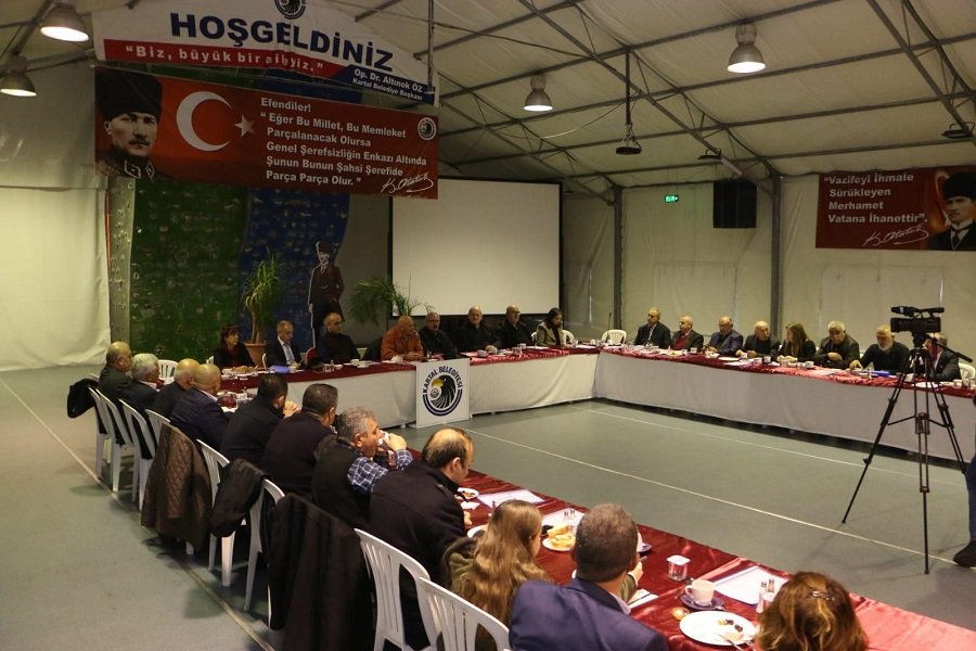 Kartal Belediyesi Ekolojik Eğitim Çadırı’nda düzenlenen toplantıya Kartal Belediye Başkanı Op. Dr. Altınok Öz’ün yanı sıra; Kartal Belediyesi Başkan Yardımcıları; Hüseyin Tozkoparan, Av. Hüsnü Yeşilyurt, Ali Apaydın, Mustafa Fehmi Okay, Nuran Keriş, Cengiz Türkmen, Kartal Belediyesi Muhtarlık İşleri Müdürü Banu Kocadağ ve Kartal’daki mahalle muhtarları katıldı.