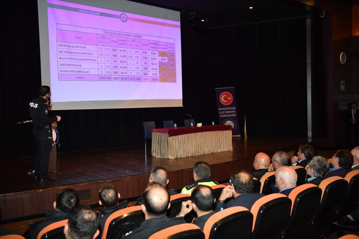 Bahçelievler’de ilçenin huzur ve güvenliğine yönelik Huzur Toplantı yapıldı. Bahçelievler Belediyesi Cemil Meriç Kültür Merkezinde gerçekleşen Huzur Toplantısı’na Bahçelievler Kaymakamı Dr. Mehmet Boztepe, Bahçelievler Belediye Başkanı Dr. Hakan Bahadır, İlçe Emniyet Müdürü Hakan Demir, mahalle muhtarları, Siyasi Parti ve STK ile meslek temsilcileri katıldı.