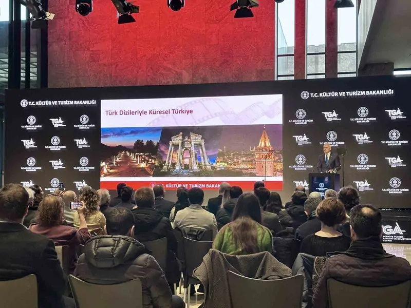 Türkiye’nin tanıtımına katkı sağlayan, en az 3 kıtada ve 10 ülkede yayınlanan dizilerimize destek sağlayacaklarını söyleyen Bakan Ersoy, ” 65 milyar 231 milyon dolar turizm geliri, 64 milyon seviyesine gelmiş ziyaretçi sayısıyla Türkiye’yi bugün gelir miktarıyla dünyanın 7’nci,ağırladığı ziyaretçi sayısıyla dünyanın 4’üncü büyük turizm ülkesi konumuna getirdik. Bu rakamları her yıl daha da yukarıya çekmek için çalışıyor, bunu yaparken özgün ve farklı enstrümanları kullanarak projeler üretmeye özen gösteriyoruz. Bugün de bu bakış açısıyla dizilerimizi yeni nesil tanıtım vizyonumuzun lokomotifi yapıyoruz. Türkiye’nin tanıtımına katkı sağlayan, en az 3 kıtada ve 10 ülkede yayınlanan dizilerimize, Sinema Genel Müdürlüğümüz ve Türkiye Turizm Tanıtım ve Geliştirme Ajansı (TGA) ile destek sağlayacağız. Bu kararı vakit kaybetmeden, bu yıl itibarıyla uygulamaya başlıyoruz” diye konuştu.