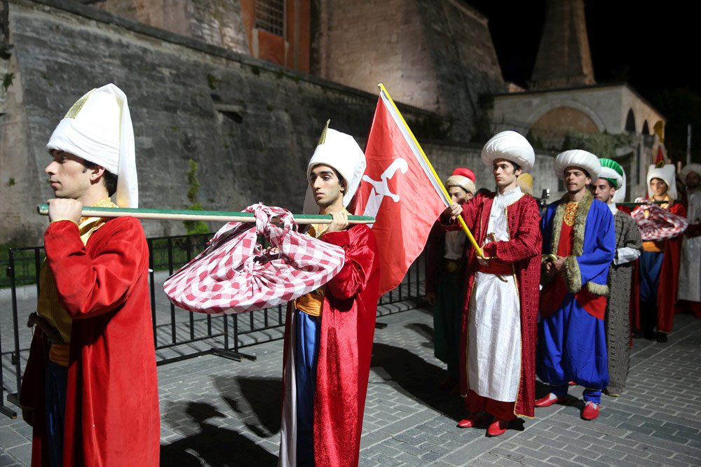 Osmanlı döneminin en önemli geleneklerinden olan Baklava Alayı’nın üçüncüsü, Fatih Belediye Başkanı Mustafa Demir’in katılımıyla Sultanahmet Meydanı’nda gerçekleşti. Sultanahmet’te Ramazan’a özel düzenlenen Baklava Alayı etkinliğinde, vatandaşlar ve turistlere baklava ikram edildi. 60 kişilik mehter takımının konser verdiği programda dönem kıyafetleri giyen 20 yeniçeri ve 80 askeri görevli, tarihi kişilikleri canlandırdı. Ardından ise Sultanahmet Camii’nin belirli yerlerine kurulan masalarda, halka ve turistlere 20 bin kutu baklava ikram edildi.