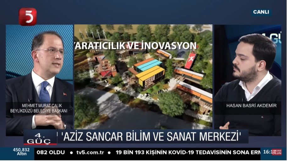 TV 5 televizyonunda yayınlanan Hasan Basri Akdemir ve Mustafa Deniz’in sunduğu ‘4. Güç’ programında canlı yayın konuğu olan Beylikdüzü Beldiye Başkanı Mehmet Murat Çalık, eğitimde sorunlar ve çözüm önerilerine yönelik açıklamalar yaparak 4 büyük eğitim projesi hakkında bilgiler verdi. Bir kentte eğitimle ilgili doğru kararlar alınmadığı takdirde o kentte mutlu bir toplum inşa etmenin mümkün olmadığına vurgu yapan Başkan Çalık “Biz Beylikdüzünü bir eğitim uygulama üssüne dönüştürmek istiyoruz. Bu kapsamda dört farklı alanda yapacağımız hizmet ve iş birliğiyle gençlerimizin önünü açarak bu alanları onlara bir fırsat oluşturmak ve rekabet gücünü artırmak için kullanacağız. Bu dört binayı birbirine bir ağ ile bağlayacağız. Birbiri ile iletişim halinde olacak merkezlerle birlikte gençlerimizi dünyayla rekabet edebilir ve fikirlerini özgürce ortaya koyabilir hale getireceğiz.” dedi.