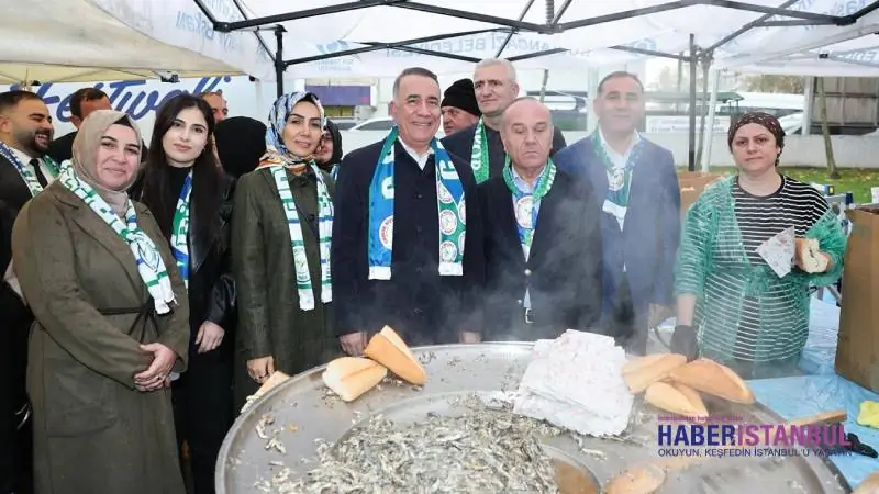 Yağmura rağmen metrelerce kuyruk oluştu; Başkan Dursun da tezgahın başına geçerek balık ekmek dağıttı. Horon ekibinin gösterisi izleyicilerden alkış aldı.