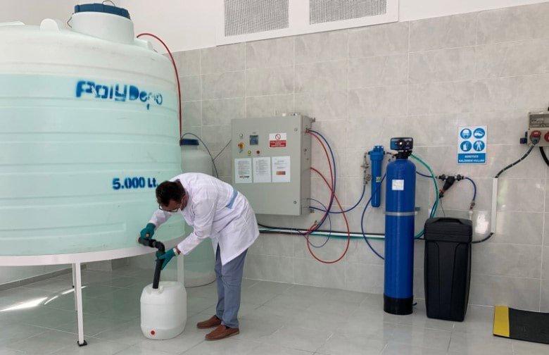 İBB’nin kendi olanakları ile geliştirdiği ürün hakkında bilgi veren İSTAÇ Saha Hizmetleri Genel Müdür Yardımcısı Eyyup Demirhan, şunları kaydetti: “Cihaz, 100 ile 500 ppm arasında konsantrasyonlarda dezenfektan üretimi yapabilmektedir. Farklı konsantrasyonlar, farklı ortam dezenfeksiyonu için kullanılmaktadır. Cihazımız, 500 ppm konsantrasyonda günde 8 bin litre dezenfektan üretebilmektedir. Bu el dezenfektanı için kullanılacaksa, seyreltme yapılarak 24 bin litreye çıkmaktadır. Tesisimizde günde 24 bin litre el dezenfektanı üretilebilir. Ayrıca ürün seyreltme yapılarak, ortamların dezenfeksiyonunda kullanılabilmektedir. Seyreltme yapılarak elde edilen ürünün 1 litresi ile 800 metrekare alanı sisleme yönetimi ile dezenfekte edebilirsiniz.”