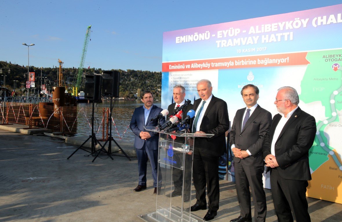 İnşaatı devam eden Eminönü-Eyüp-Alibeyköy Tramvay Hattı ile ilgili de bilgi veren İBB Başkanı Uysal, Eminönü’den başlayıp Alibeyköy’de son bulacak ve 14 duraktan oluşacak Eyüp-Alibeyköy Tramvay Hattı’nın devam eden işlerden biri olduğunu dile getirdi. “Eyüp’te ilave yeni yapacaklarımız var” diyen Uysal; “Burada şu anda Eminönü-Alibeyköy Tramvay Hattı inşaatı devam ediyor. Daha önce ihalesi yapılmış, inşaatına başlanmış bu hattın 2018 yılı sonu itibarıyla bitirilmesi planlanan, ancak bu arada da Haliç içerisinde fore kazıklar üzerinde yol geçecek bölümleri de var. Onlarda bir aksama olmazsa, 2018 yıl sonu itibarıyla bitirmeyi planlıyoruz. İnşaat faaliyetleri güzel bir şekilde devam ediyor” ifadelerini kullandı.