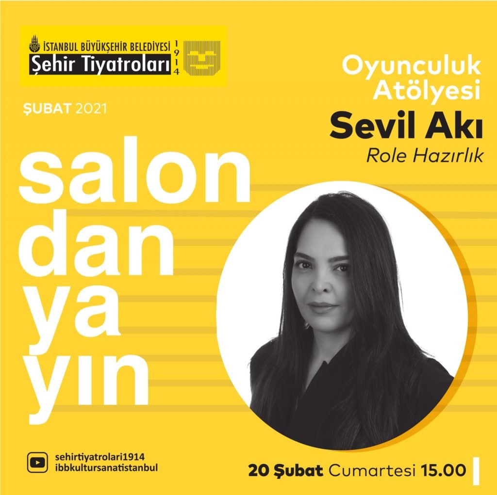 20 Şubat Cumartesi günü 15:00’te, “Sevil Akı ile Role Hazırlık Atölyesi” gerçekleştirilecek. Oyunculuk mesleğinde, bir oyuncunun role hazırlanma teknikleri, nelere dikkat etmesi gerektiği, karakter okuma ve değerlendirme gibi belirli çalışmalar bu atölye çerçevesinde katılımcılarla paylaşılacak.