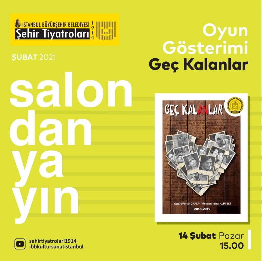 14 Şubat Pazar günü 15:00’te Geç Kalanlar isimli oyunumuz seyirciyle buluşacak.