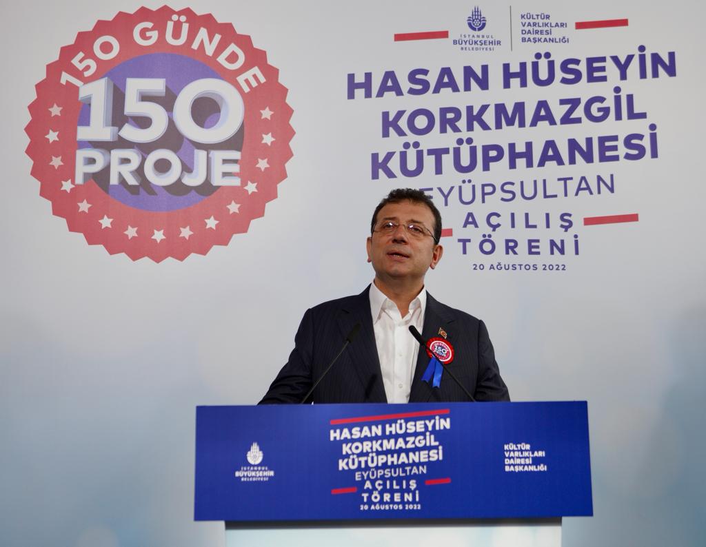 Önümüzdeki 1,5 yıl boyunca daha nice “150 Proje” kesitlerini İstanbullularla paylaşacaklarını söyleyen İmamoğlu, kütüphanenin yeni Hasan Hüseyin Korkmazgil’lerin yetişmesine katkıda bulunacağını belirtti. Hurafeden beslenen değil kendi aklıyla üreten ve geleceğe cesaretle bakan bir nesli, öz güveni yüksek bir nesli var etmek için tüm olanakları kullanacaklarının altını çizen İBB Başkanı, “Türkiye dünyanın belki de en genç nüfuslarından birisine sahip. Fakat o genç nüfus verimli bir biçimde yetiştirilirse anlamlı. Aksi takdirde anlamlı bir sonuca erişmesi mümkün değil. Hayat boyu çok beslendiğim bilgiden, kitaptan, kütüphanelerden, bu şehirdeki bütün çocukların aynı oranda, hatta beni geçen oranda faydalanacağı imkanları bu şehirde var etmek içi yola çıktık. Bu şehrin çocuklarını eşitleyeceğiz demiştim. Bağcılar’dan Bakırköy’e, Tuzla’dan Beylikdüzü’ne, Silivri’den Şile’ye, Bakırköy ve Kadıköy’e kadar her çocuğumuzu eşitleyeceğiz… Çocuklar hızlı büyüyorlar. Bizim onların hızına yetişmemiz lazım. Allah beni bu şehrin çocuklarına mahcup etmesin” dedi.