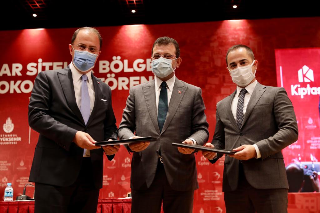 İstanbul Büyükşehir Belediye (İBB) Başkanı Ekrem İmamoğlu, Beylikdüzü Belediyesi ve KİPTAŞ A.Ş. arasında imzalanan Gürpınar Siteler Bölgesi Protokol İmza Töreni’ne katıldı. Beylikdüzü Belediyesi Atatürk Kültür ve Sanat Merkezi’nde düzenlenen imza töreninde, ilk konuşmaları Beylikdüzü Belediye Başkanı Mehmet Murat Çalık ile KİPTAŞ Genel Müdür Ali Kurt yaptı. İmza törenine “şahit” sıfatıyla katılan İmamoğlu, yaptığı konuşmada, “Elbette şahit olmak önemli. Her iki tarafa da kefil olmak anlamına geliyor. Her iki tarafa da en üst seviyede kefilim. Bu işin de bir an önce, yazılanın, çizilenin ötesinde, daha erken bir biçimde tamamlanmasını yürekten arzu ediyorum” ifadelerini kullandı.