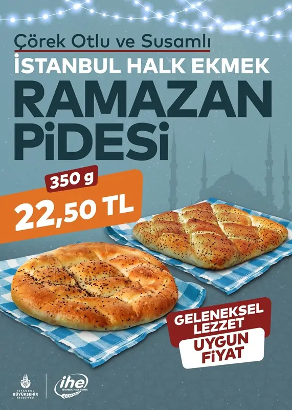 Taze üretim ve aynı gün satış prensibiyle hareket eden İHE, İstanbulluların iftar sofralarındaki en güvenilir adresi olmaya devam ediyor. Ramazan pideleri, İstanbul’un 39 ilçesinde hizmet veren 698 Halk Ekmek büfesi aracılığıyla günlük olarak satışa sunulacak.