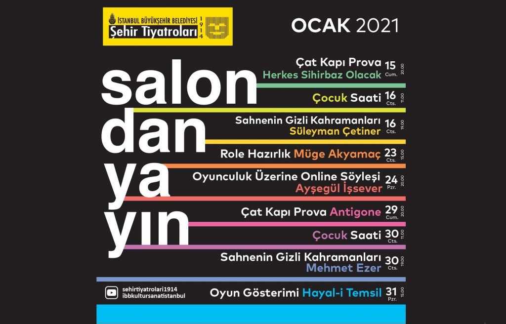 İBB Şehir Tiyatroları’nın Ocak ayında kurumsal sosyal medya hesaplarından sanatseverlerle buluşturacağı söyleşi, okuma provası ve oyun gösterimi programları şu şekilde: