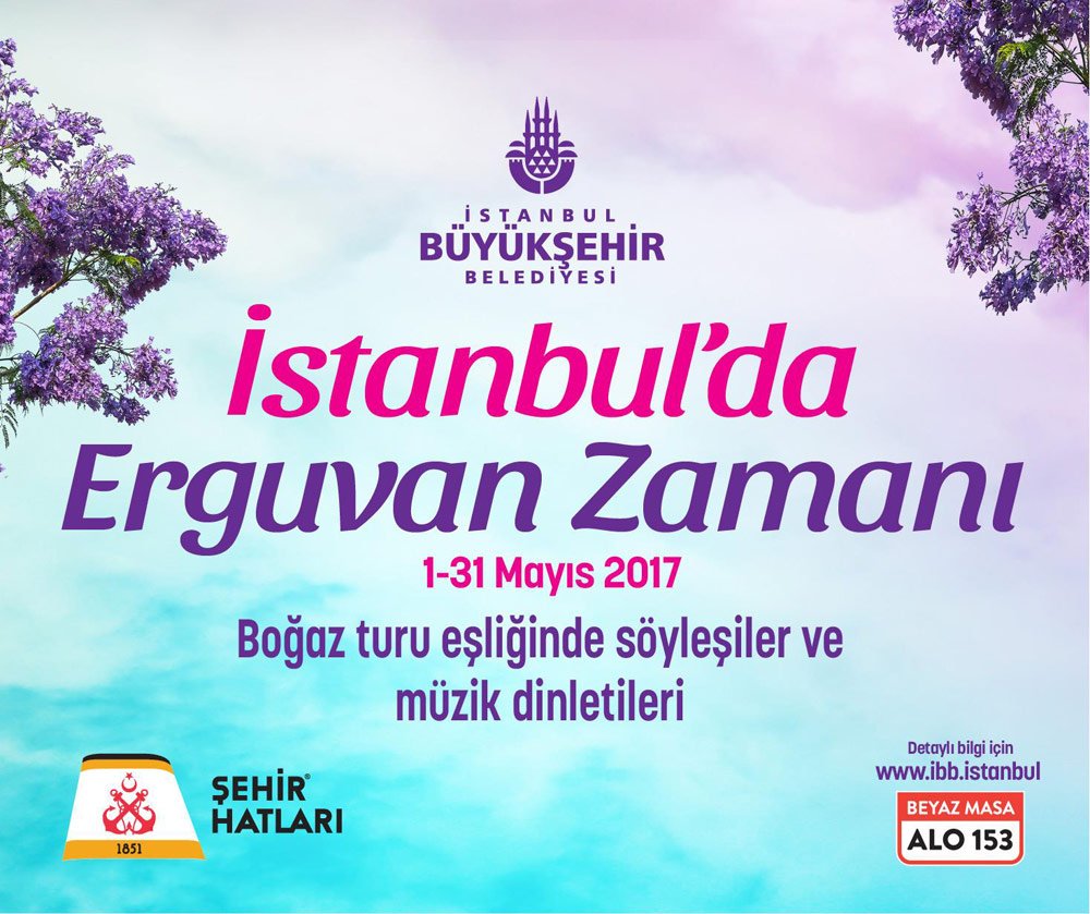 İstanbul Büyükşehir Belediyesi, erguvanı bir kez daha İstanbullular ile buluşturuyor. Baharın müjdecisi olan erguvan ağaçları, mor renkli çiçekleriyle İstanbul Boğazı’nı süslüyor. 31 Mayıs 2017 tarihine kadar sürecek Erguvan Festivali kapsamında İstanbullular; söyleşiler, şiir ve müzik dinletileri eşliğinde gerçekleştirilecek olan Boğaz turlarında erguvanların seyrine doyacak.