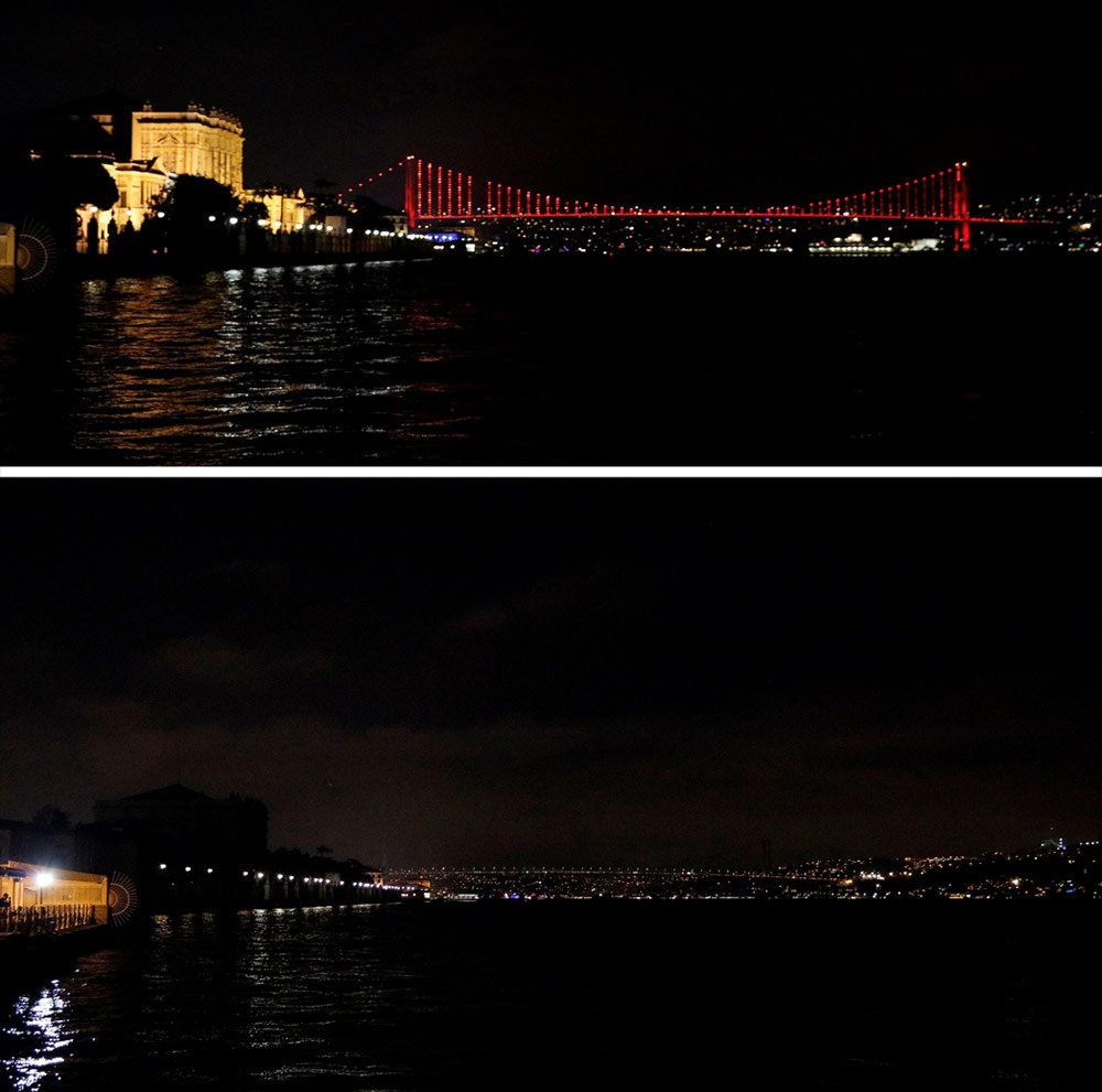 İstanbul’da Sultanahmet Camisi, Süleymaniye Camisi, Ayasofya, Topkapı Sarayı, Beykoz Kasrı, Beylerbeyi Camisi, Beylerbeyi Sarayı, Dolmabahçe Camisi, Dolmabahçe Sarayı ve Saat Kulesi, Galata Kulesi, Ihlamur Kasırları, 15 Temmuz Şehitler Köprüsü, Fatih Sultan Mehmet Köprüsü, Küçüksu Kasrı, Anadolu Hisarı, Rumeli Hisarı, Üsküdar Mihrimah Sultan Camisi, Yeni Cami, Yıldız Sarayı, Galatasaray Üniversitesi, İstanbul Bilgi Üniversitesi, İstanbul Ticaret Üniversitesi, Vodafone Arena, Türk Telekom Arena, Ülker Stadyumu’nda ışıklar bir saatliğine kapatıldı.
