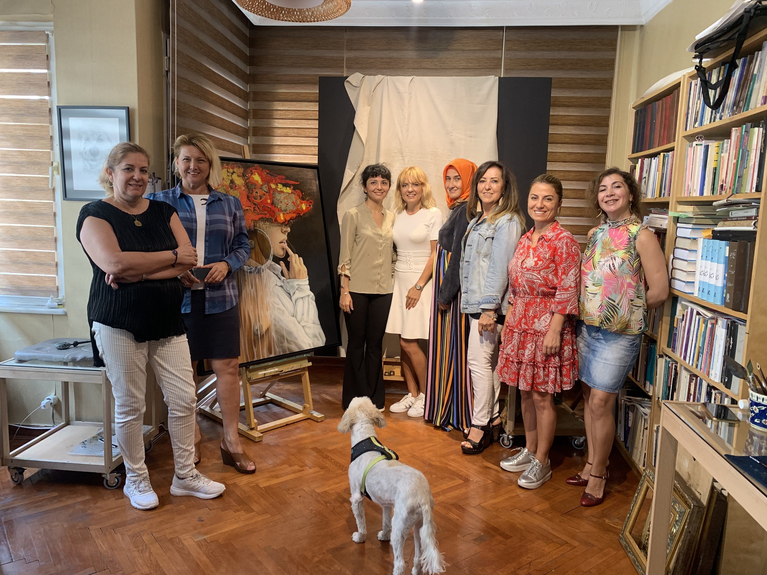 Dernek üyeleri Selin Bozkurt, Handan Aral, Nermin Aşçıoğlu, Zeliha Kavuncu, Yasemin Atatüre, Ayşen Laçinel ve Zeynep Gül Uzunkaya’nın katıldığı ziyarette, sanatçıyla eserleri ve sanatı üzerine keyifli bir sohbet gerçekleştirildi.