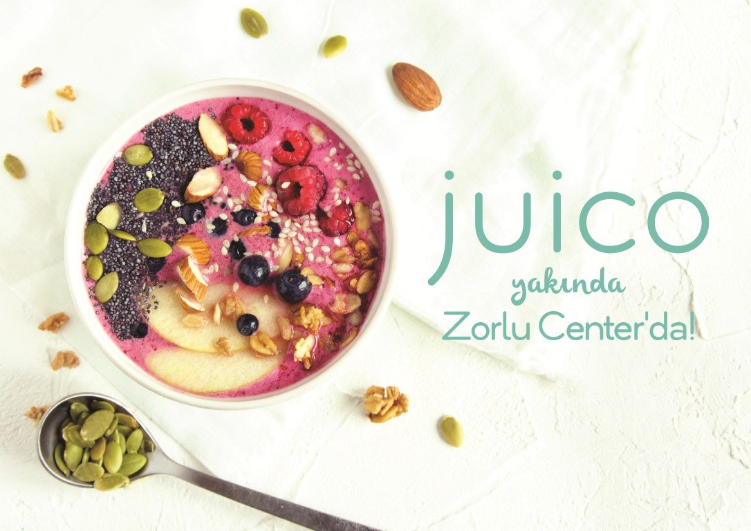 Juico’nun “coldpressed (soğuk sıkım)” yöntemiyle oluşturduğu tamamen katkısız, şeker ilavesiz, alkali seviyesi yüksek juice’ları ve günlük beslenmesine sağlık, hafiflik ve lezzet katmak isteyenler için hazırladığı yiyecekleri, konsept mağazalarıyla fark yaratan Zorlu Center’da yer alacak. Diğer kiosklardan farklı bir konsept ve yepyeni içerikleriyle hizmet verecek olan marka; smoothie, salata, tatlı, bowl siparişi veren Juicoseverler’e ürünleri anında hazırlayıp sunacak.