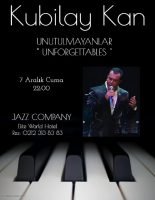 Piyanist, şarkıcı ve besteci Kubilay Kan, 7 Aralık Cuma Akşamı “UNUTULMAYANLAR” konseptli özel gecesinde müzikseverlerle Jazz Company / Elite World İstanbul Hotel ‘de buluşuyor. Programda müzik tarihinin en unutulmaz, belleklerde yer etmiş olan parçaların seslendirileceği gecede sanatçı, özel repertuvarı ve sahne şovlarını birleştirdiği gösterisiyle sizlerle.Kubilay Kan performansının ilk bölümünde: ‘Unutulmayanlar’ konsepti ile Frank Sinatra’dan, Sting’e; Elton John’dan, Nat King Cole’a hepimizin kalbine yer etmiş unutulmaz şarkılar yer verecek…