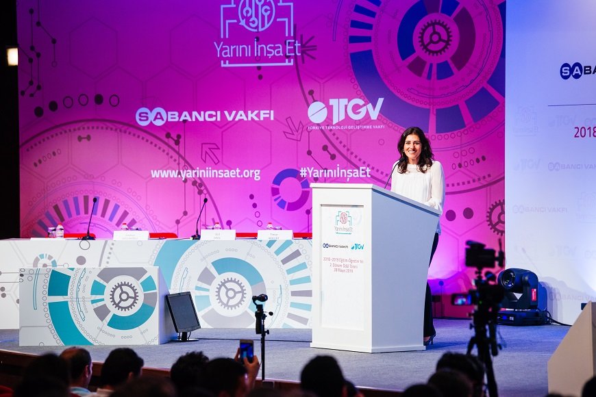 “Yarını İnşa Et” projesi ödül töreninde konuşan Sabancı Vakfı Genel Müdürü Nevgül Bilsel Safkan, “Sabancı Vakfı olarak, 45 yıldır toplumsal gelişmeye katkıda bulunmak için çalışıyor, bu kapsamda gençlerin güçlenmesine ve potansiyellerini gerçekleştirmelerine büyük önem veriyoruz. Gençlerin güçlenmesi için eğitimin kilit bir role sahip olduğunu biliyoruz. Yarını İnşa Et projesi eğitimde dijital dönüşüm sürecinin çıktılarından faydalanabilen ve bu becerileri eğitim ve iş hayatında kullanabilen öğrencilerin yetiştirilmesi vizyonuyla yola çıktı. Bu projede hem gençlerin teknolojiyi kullanma becerilerinin gelişmesini, hem de içinde yaşadıkları çevreye ait sorunları fark ederek çözüm üretmelerini hedefledik. Bu projenin gerçekleşmesi için emeği geçen herkese, iş birliği için Türkiye Teknoloji Geliştirme Vakfı’na, katılan tüm öğretmen, öğrenci ve jüri üyelerimize teşekkür ediyorum” dedi.