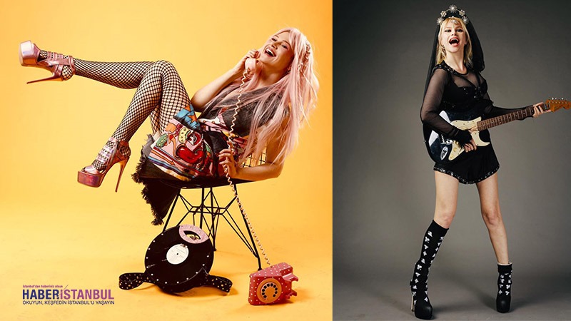 Rock enerjisini fotoğraf karelerine taşıyan Seçkin Piriler; Siyah tüller, keskin hatlara sahip aksesuarlar, elektrik gitarı ve yüksek moda dokunuşlarla donanım stiliyle dikkat çekiyor.