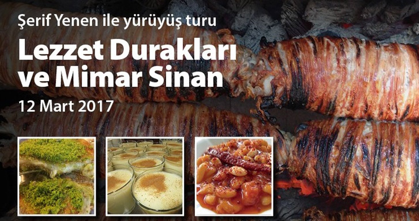 Şerif Yenen tarafından düzenlenen organizasyonun ismi, “Lezzet Durakları ve Mimar Sinan”… Tarihi yarımadada gerçekleşecek olan gezi, katılımcılarına İstanbul’un en lezzetli sokak yiyeceklerini tatma ve Mimar Sinan’ın üç önemli eserini keşfetme olanağı tanıyor. Mimar Sinan tarafından inşa edilen Şehzade Camii, Süleymaniye Camii ve Kanuni’nin Sadrazamı Rüstem Paşa’nın çinileriyle ünlü camisinin dahil olduğu gezi, sohbetler, fotoğraf çekimleri ve Şerif Yenen’in uzman anlatımıyla renklenerek unutulmaz bir anıya dönüşecek.