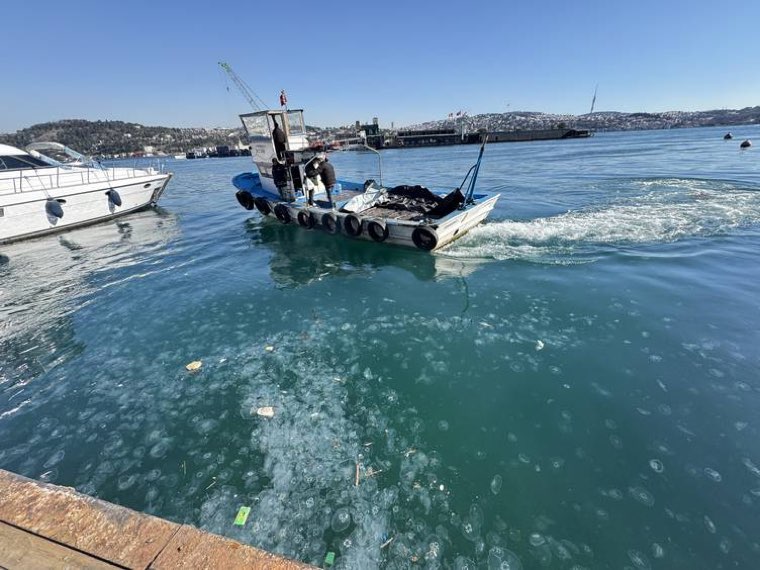 İstanbul Boğazı’nın Sarıyer ve Beşiktaş kıyılarında su yüzeyi denizanasıyla kaplandı