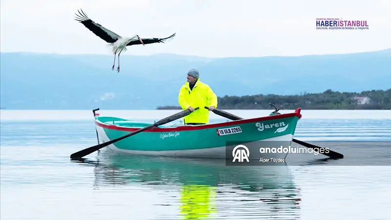 Bursa’nın Karacabey ilçesinde, Uluabat Gölü’nün kıyısındaki kırsal Eskikaraağaç Mahallesi’nin simgesi Yaren leylek, 15’inci yılda da gelip balıkçı Adem Yılmaz’ın kayığına kondu.