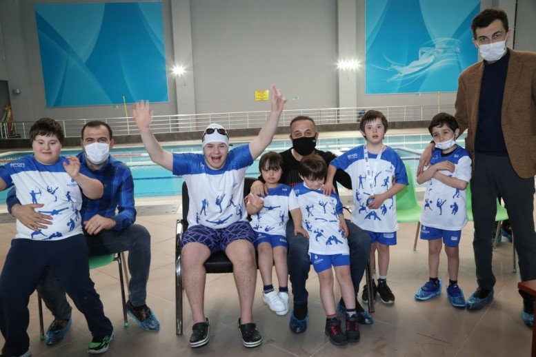 Her gün kendileri için belirlenen özel programlara katılan çocuklar 21 Mart Down Sendromlular Günü’nde de eğitimlerini ihmal etmedi. Sabahın erken saatlerinde tesise gelen çocuklar eğitmenlerin eşliğinde yaptıkları ısınma hareketlerinin ardından ip ve toplarla yapılan çeşitli hareketleri; yürüme, tutma ve çekme hareketlerini, denge ve koordinasyon hareketlerini yaptı. Çocuklar günün finalinde ise yüzme performanslarını sergiledi.