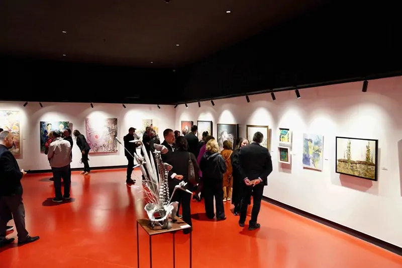 Konuşmaların ardından kurdele kesilerek serginin resmi açılışı yapıldı. Aslan, İmamoğlu ve beraberindeki heyet, sergide yer alan 61 sanatçının eserlerini gezdi.
